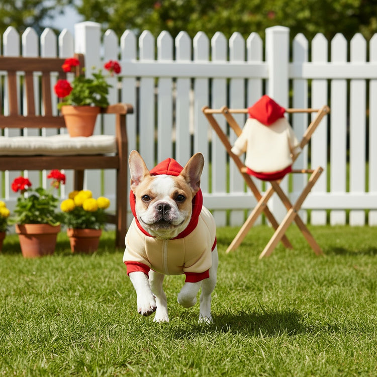 Check out our Dog Hoodies as playful pups romp, cuddle, and strut their stuff. See how our V-shaped rear cut and stretch fabric make every potty break and fetch session seamless.
